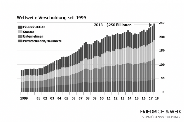 Unternehmen und Staaten sind süchtig nach der Droge billigem Geld. Staats- und Unternehmensanleihen steigen auf immer neue Rekordhöhen. Staaten verschulden sich im Rekordtempo. Dank immer niedrigerer Zinsen werden immer mehr Schulden gemacht. Die Verschuldung von Unternehmen wächst kontinuierlich. Sie investieren mit den aufgenommenen Krediten allerdings nicht etwa in Forschung, Entwicklung und Wachstum, sondern in Aktienrückkaufprogramme.