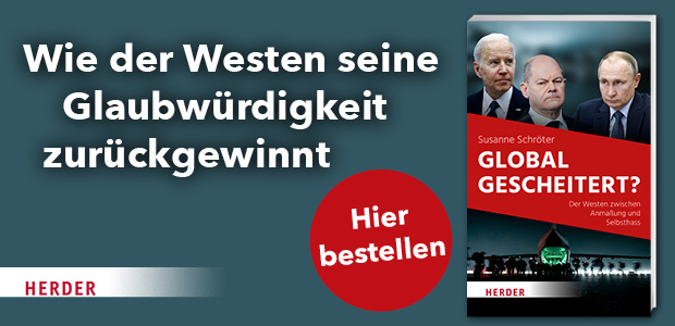 Susanne Schröter, Global gescheitert? Der Westen zwischen Anmaßung und Selbsthass. Herder Verlag, Hardcover mit Schutzumschlag, 240 Seiten, 20,00 €.
