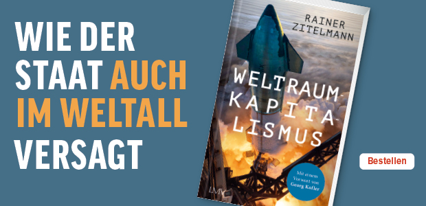 Rainer Zitelmann: Die erste Zeitung, die ich im Alter von elf Jahren gründete, hieß „Galaktische Zeitung“. Mein ganzes Interesse galt damals der Raumfahrt und der Astronomie. Das Interesse ist vor einigen Jahren neu erwacht, weil es kein besseres Beispiel gibt als die Raumfahrt, um die Überlegenheit von privatem Unternehmertum gegenüber staatlichen Organisationen zu veranschaulichen.