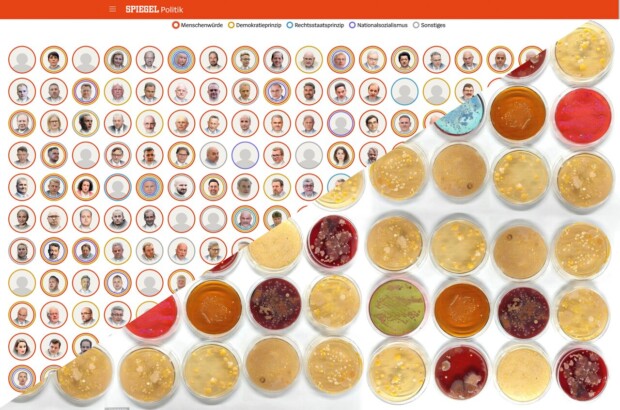 Selbst Mainstream-Gazetten wagen es inzwischen über die juristische Relevanz dieses Rohrkrepierers von 1100 Seiten zu lästern und jede Redaktion mit einem Minimum an Sorgfaltspflicht hätte es dabei belassen. Nicht so das „Institut für politische Hygiene“ in der Hamburger Ericusspitze Nr. 1! Hier kamen Qualitäts-Info-Techniker auf eine einmalige Idee. Sie bastelten sich in einer Nacht-und-Nebel-Aktion aus dem BfV-Altpapier einen interaktiven AfD-Pranger, –„Zitatdatenbank“ genannt –, dessen Design nicht nur für Wissenschaftler eine unverkennbare Ähnlichkeit mit einer bakteriologischen Zuchtstation hat.