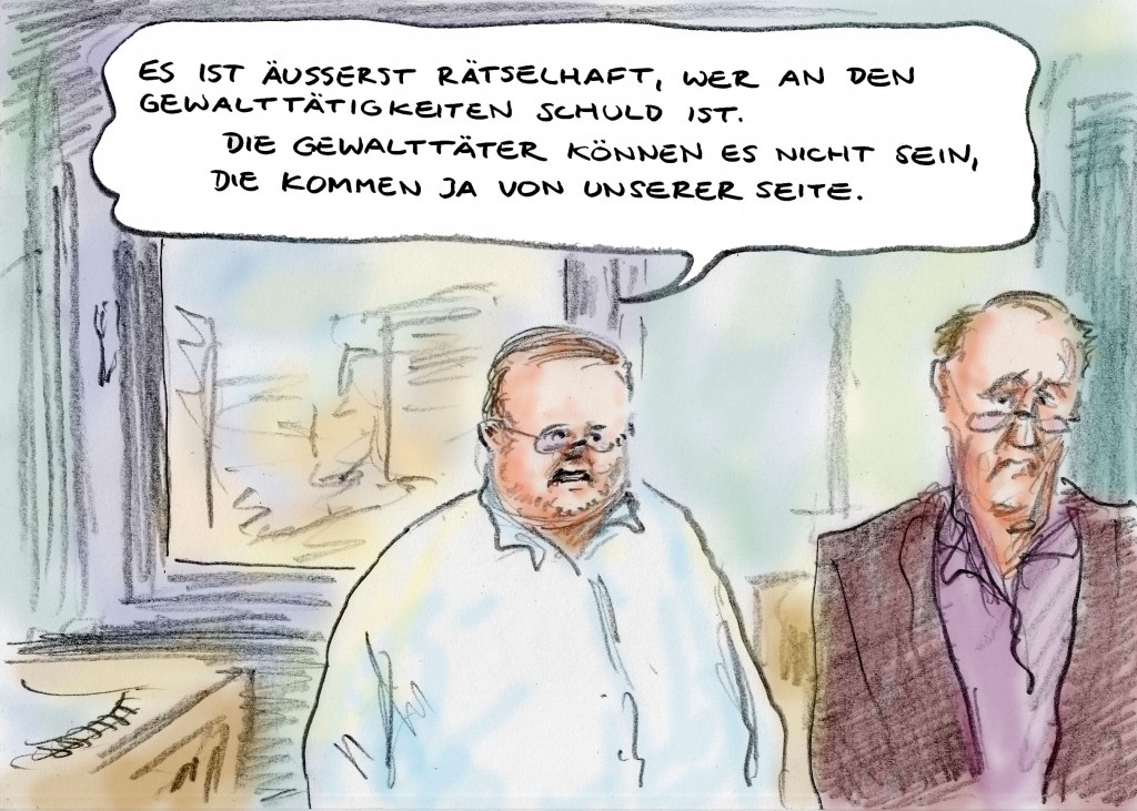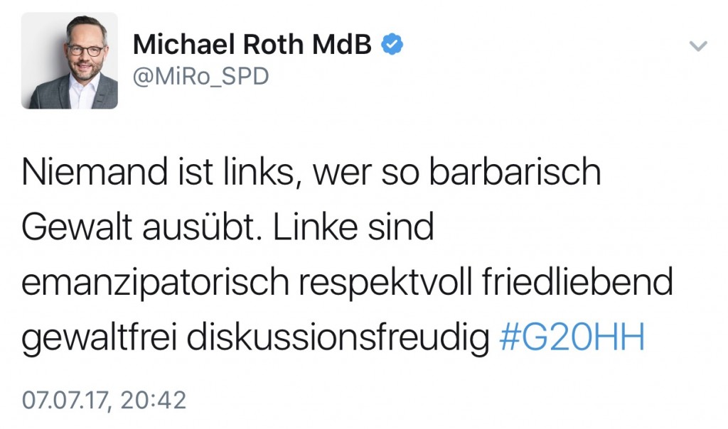 Doch nein, unser Volksaufklärer Stegner bietet die ideologisch saubere Lösung an, die in den gleich aufgeklärten Medien auch sofort aufgegriffen wird: Wer Gewalt anwendet und trotzdem nicht „rechts“ ist, ist kriminell. Damit fädelt Stegner wieder in die vorbildlich einfache Weltsicht seines Mitgenossen Michael Roth ein: