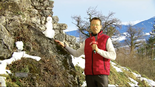 Kurz vor Weihnachten zeigte er einen Mini-Schneemann, weil das Tauwetter in unteren Lagen mehr nicht hergab für den Bau von Schneemännern. Und dann sagte der Wettermann – gender-verlegen – „Schneepersonen”.