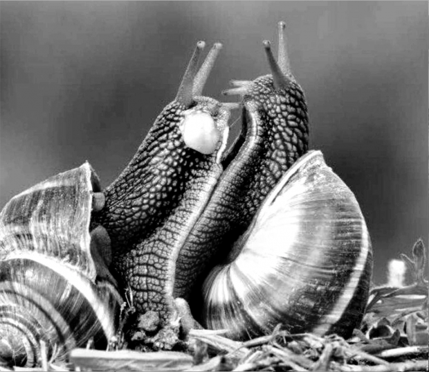 Die Paarung von Weinbergschnecken (Helix pomatia)