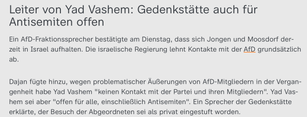 Bildschirmfoto 2023-05-12 um 18.00.06 Published on 12. Mai 2023 in AfD-Abgeordnete besuchen Gedenkstätte Yad Vashem – das ZDF reagiert mit FramingFull resolution (620 × 236) Next → Screenshot ZDF