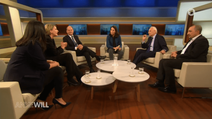 Wir gehen ansatzlos zur SPD. Da sind die Bürger ja mäßig gespannt, wer Kanzlerkandidat der ehemaligen Volkspartei werden soll. Drei ??? stehen im Raum, von denen eines gesetzt wäre, wenn es sich traute, das andere rüttelt bereits ungeduldig an der Tür. Das dritte war gestern in der Show. Viele Zuschauer erinnern ihn vielleicht noch als den mit dem roten Schal. Also, wenn Scholz die Genossen Siggi, Maas, Stegner und Schulz auf fernste Botschafterposten (Afghanistan, Maghreb) wegloben könnte, würde die SPD glatt wieder wählbar!