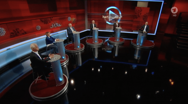 Die erfahrene Altenpflegerin Silke Behrendt-Stannies stimmt hier aus ihrer Perspektive vehement zu. Renditeerwartungen dürften nicht durch Pflegeeinrichtungen geweckt werden, das sei fatal, nein, das sei jetzt im Moment sogar tödlich. Für Behrendt-Stannies sind die Sonderzahlungen an Pflegekräfte aktuell auch keine Prämie, sie spricht von einer „Gefahrenzulage“. Überhaupt scheint dass eine taffe Frau zu sein, die den anwesenden Herren von der praktischen Arbeit kommend direkt im Studio mal ordentlich die Haare wäscht. Und Plasberg lässt die Herren gar nicht mehr zu Wort kommen nach ihrem Plädoyer für eine Enteignung der privaten Altenpflege. Er nimmt es sogar als Schlusswort und dann fällt der Vorhang: „Sie haben einen Denkauftrag formuliert und dafür danke ich Ihnen.“ Die Forderung der Verstaatlichung von Pflegeeinrichtungen wird also zum Abschlussgong. Dass ein Großteil der Pflegeheime in quasi-staatlicher Hand sind, nämlich in der der großen „Wohlfahrtsverbände“ wie AWO, Caritas usw – kein Wort davon. Wieso in staatlichen Heimen plötzlich Masken auftauchen würden und warum das Virus um schmuddelige Staatsbuden einen Bogen machen würde – das wird nicht erklärt. Das staatliche Fernsehen will wohl jetzt die Totalverstaatlichung aller Lebensbereiche; damit die Qualität überall absinkt.