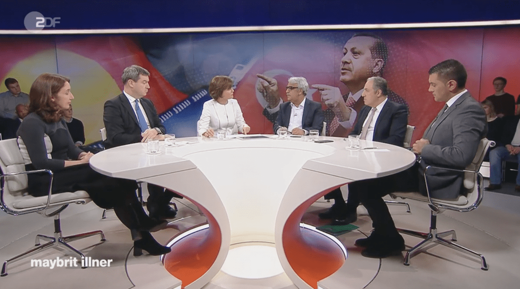 Weiter Gäste bei Illner waren neben Söder, der wieder einmal die Beendigung der EU-Verhandlung mit der Türkei fordert, aber mit dem so genannten Flüchtlingsdeal wohl ganz zufrieden ist, der HDP-Abgeordnete im türkischen Parlament, der pro-kurdische Oppositionspolitiker Mithat Sancar. Er findet, die Bundesregierung hätte zu viele Zugeständisse gemacht, man dürfe die Politk Erdogans nicht belohnen. Türkische Sicherheitskräfte hatten im Rahmen einer „anti-terroristischen Operation“ Ende 2016 wurden Mitglieder seiner Partei festgenommen, darunter die beiden Parteivorsitzenden. Sancar übersetzte Jürgen Habermas Habilitationsschrift „Strukturwandel der Öffentlichkeit“ in die türkische Sprache. Was später vielleicht noch eine Rolle spielen wird: Sancar erlangte bundespolitische Aufmerksamkeit in Deutschland durch ein Grußwort auf einem Parteitag von Bündnis 90/Die Grünen im November 2015. Er hat also als türkischer Abgeordneter in Deutschland Politik gemacht.