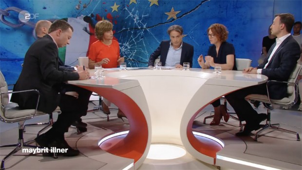 Weil die Plaudertaschen auch gemeinsam doch etwas wenig ökonomisches Gewicht auf die Waage bringen, hatte Illner noch den Berliner Professor Sebastian Dullien in der Hinterhand. Der von der linken taz bis zur linken Frankfurter Rundschau geschätzte Ökonom durfte als Anti-Lucke zuerst beschwichtigen und dann eine „Versicherung der Staaten untereinander“ ins Spiel bringen. Ausgerechnet bei Markus Lanz im Anschluss kamen dann durch Professor Hans-Werner Sinn mal ein paar Fakten auf den Tisch. Es wird teuer, Freunde!