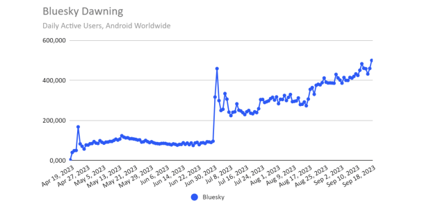 Musk habe via X „so gut wie keine Einnahmen mehr“, da es dort praktisch keine Werbung mehr gebe, erklärt Riedel. Bei den Anzeigen auf X muss es sich also um irgendetwas anderes handeln. Außerdem würden die „User in Scharen zu Mastodon und bluesky“ fliehen. Was sich dort aus irgendwelchen Gründen nicht vollumfänglich niederschlägt. Mastodon ist ungefähr so lebendig wie ein Mammut im sibirischen Permafrost. Bei bluesky, der Alternative, zu der zu ziehen viele Progressive bei X seit über einem Jahren versprechen, liegt die Zahl der täglichen Nutzer nach einem kurzen Sprung nach oben heute kaum höher als damals, als die Plattform nach Ansicht der Guten Twitter innerhalb kürzester Zeit niederkämpfen sollte.