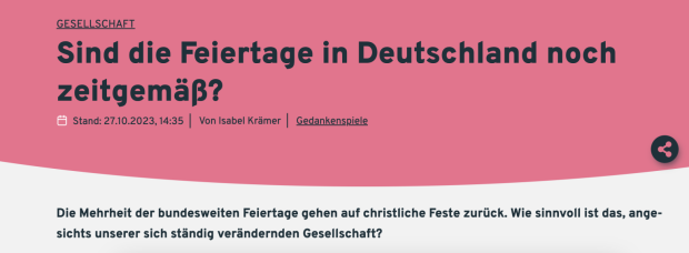Genauso wie übrigens die allfälligen Fragen nach der Berechtigung christlicher Feiertage, wie sie aus Pluralitätsgründen gleich mehrere öffentlich-rechtliche Anstalten stellen.