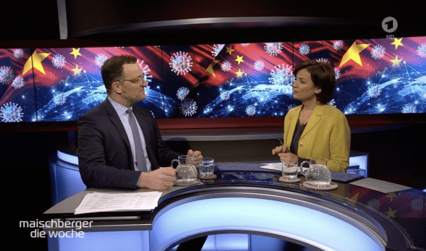 Bei Maischberger kurzfristig ebenfalls noch eingeladen ist Sawsan Chebli, deutsche politische Beamtin (SPD) palästinensischer Herkunft. Los geht’s. Maischberger eröffnet damit, dass sich die Zuschauer nicht wundern sollen, sie hätten aus „technischen Gründen“ in ein anderes Studio umziehen müssen. Auweia. Frontales Sitzen der Zuschauer. Distanz zum Aufpassertresen. Also Corona doch gefährlicher als gedacht und Gesundheitsminister Jens Spahn weiß mehr und ist nicht willens, wie sonst üblich bei Maischberger, so nah am niesenden und hustenden Publikum zu sitzen?