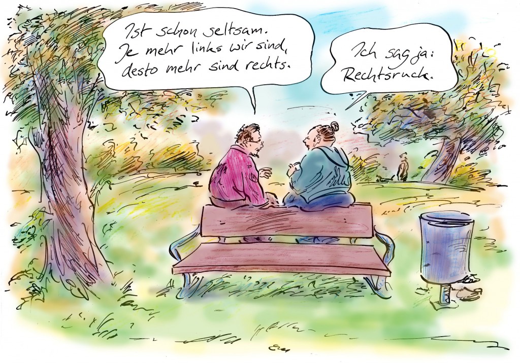 Journalist Fricke meinte noch, Finanzkrise, Eurokrise und Migrationskrise seien vielleicht etwas zu viel gewesen für die sensiblen Bundesbürger. Und überall im Westen (Trump, Le Pen!) würden sich die Menschen fragen: Globalisierung? Was haben wir davon? Und leise fügte er hinzu, dass es ja nicht immer so phantastisch weitergehe wie bisher.
