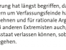 „Was es jetzt braucht, ist nicht mehr Offenheit, sondern ein scharfer Keil. Einer, der die Gesellschaft spaltet. Wenn davon die Rede ist, entsteht schnell ein Zerrbild im Kopf, als würde das Land in zwei gleich große Teile zerfallen. Doch so ist es nicht. Richtig und tief eingeschlagen, trennt er den gefährlichen vom gefährdeten Teil der Gesellschaft.“