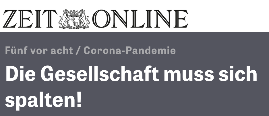Gesellschaft muss sich spalten_Zeit online_Chr. Vooren Published on 28. Dezember 2021 in Biete Wahrheitsbollwerk, brauche sehr dringend SteuermillionenFull resolution (937 × 404) ← Previous Next →