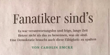 Spaltung 5 C. Emcke Fanatiker Published on 28. Dezember 2021 in Biete Wahrheitsbollwerk, brauche sehr dringend SteuermillionenFull resolution (374 × 188) ← Previous Next →