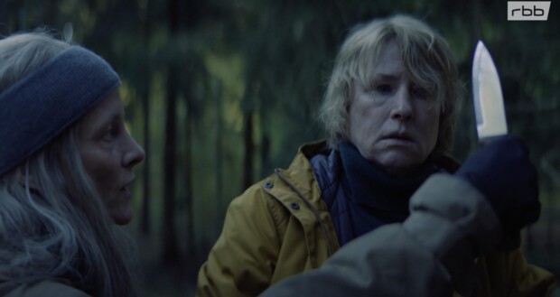 Nachdem der böse Verdacht so von dem ständig durchs Bild huschenden Canis Lupus genommen wurde, wenden sich die beiden Berliner Ermittler den weiteren am Tatort anwesenden Verdächtigen zu. Da ist zum einen die Professorin für outdoor-survival, Dara Kimmerer (Anne Ratte-Polle), und zum andern ihr Schüler Noah Farrell (Nils Kahnwald), die beide auf einem Überlebenstrainingsmarsch in der märkischen Wildnis unterwegs waren, selbstverständlich mit einer Bivak-Sondererlaubnis des Forstamts.