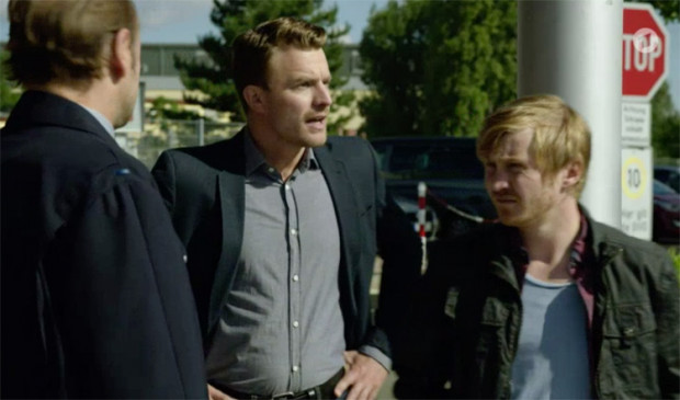 Man darf FFPNM das Kompliment machen, dass sie sich in Erfurt da keine Blößen geben. Die Maske hat allem Anschein nach eine Menge Zeit und Arbeit ins Erscheinungsbild des Trios investiert. Keine zotteligen Bärte, billigen Haarschnitte und kein Vergleich mit den Milchbubis, die von „Heiter bis Tödlich“ bis zum Stuttgarter Tatort als Ersatzteile harter Gesetzeshüter herhalten. Das SEK läuft schön synchron wie ein Mann durch Türen und grunzt markig in die Skimasken. Die Szene, in der Erfurter Kommissar Nr. 3 dem widerspenstigen Verdächtigen den Kopf auf die Tischplatte schlägt, hätte man sich allerdings sparen können: die – in US-Serien meist auf dem Fuße folgende – Drohung mit gutgebauten Mithäftlingen dunkler Hautfarbe und heruntergefallenen Seifestücken hatte man sich ja auch gespart.