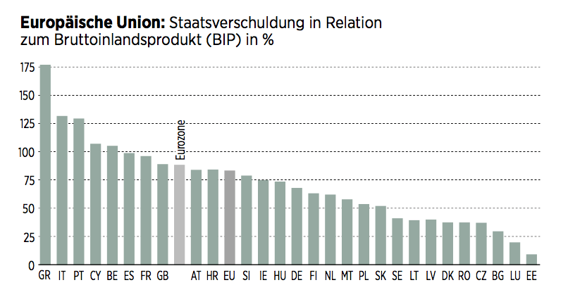 Die aufgetürmten Defizite durch Handelsbilanzüberschüsse Deutschlands bei gleichzeitiger Kapitalflucht aus den Peripheriestaaten der EU nach Deutschland führen dazu, dass die Bundesbank der Hauptgläubiger dieses Überziehungskontensystems ist. Dort stehen allein 800 Milliarden Euro im Feuer. Dazu kommen die Rettungsvehikel, die Deutschlands Regierung den Partnern im Euro zur Verfügung gestellt hat.