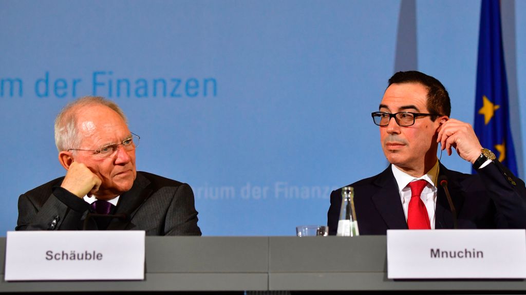 Schäuble Mnuchin 30. April 2017Full resolution (1024 × 576) ← Previous Next → German Finance Minister Wolfgang Schaeuble (L) and US Secretary of the Treasury Steven Mnuchin address a press conference at the finance ministry in Berlin on March 16, 2017.