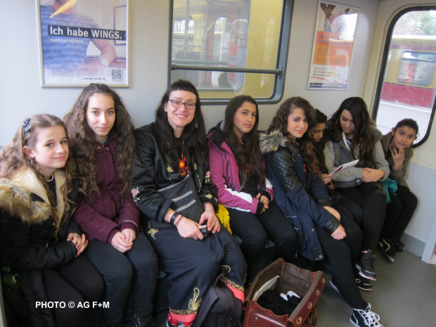 (Rebecca Sommer mit Flüchtlingsmädchen der AG F+M Tanzgruppe Heimatsterne, Bild: @ AG F+M)
