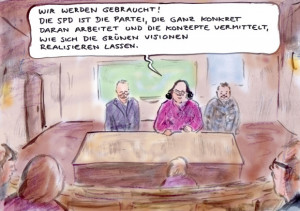 Antwort der Ministerpräsidentin: „Wir brauchen nicht das neue große Projekt, sondern wir brauchen Klarheit in Themen, wo wir im Moment noch nicht ganz klar sind, aber ich möchte darauf hinweisen, dass in den letzten Monaten ganz wesentliche Projekte auf den Weg gebracht worden sind, die ursozialdemokratisch sind. Und ein Teil dessen ist, was wir auch mit der Erneuerung verbinden.“