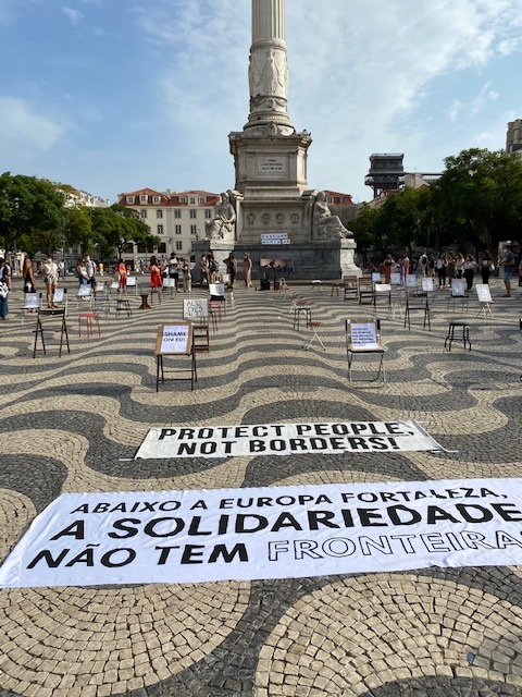 In anderen europäischen Städten fanden in den vergangenen Tagen zwar ähnliche „Wir haben Platz“-Kampagnen wie in Berlin statt, wo linke Aktivisten symbolisch 13000 Stühle vor dem Reichstag aufbauten. Eine entsprechende Veranstaltung fand beispielsweise am Sonntag auf dem Rossio-Platz in Lissabon statt, organisiert von der Organisation Humans Before Borders (HuBB). Allerding fiel die Stuhl-Aufstellung dort sehr viel kleiner aus als die „Wir haben Platz“-Aktion in Deutschland – und fand nur spärliche Resonanz. Das Portal „Galus Australis“ berichtete, in Lissabon hätten 200 Menschen demonstriert – illustrierte den Beitrag allerdings nur mit einem verwischten Foto. Tatsächlich waren es, wie unten stehende Bilder zeigen, nur wenige Dutzend Aktivisten.