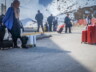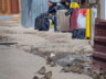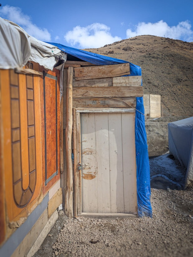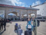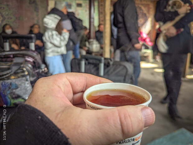 Die kleine Teestube, in der ich sitze, ist heute die einzige geöffnete Bewirtung hier. Verkauft werden Schokoriegel, Wasser und Tee. Ein paar Buden weiter bietet jemand Ersatz-Rollkoffer und Reisezubehör an – aber gänzlich ohne Zuspruch. Viele weitere kleine Selbstbaubuden entlang der Straße stehen leer.