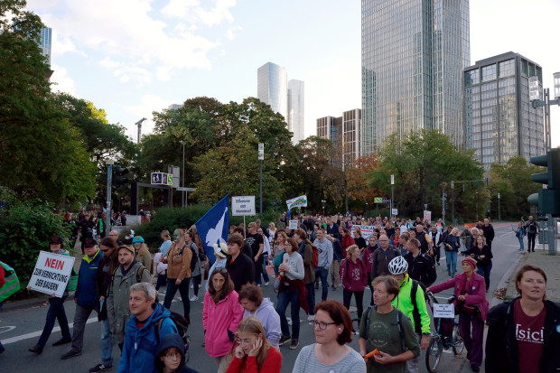 In Frankfurt ging es am Samstag um „Frieden, Freiheit, echte Solidarität“ – was man als Distanzierung von der NGO-gesteuerten, de facto regierungsnahen Demonstrationsreihe ansehen mag. Einigen Demonstranten ging es auch um Politikerhaftung oder den Erhalt des Bargelds.