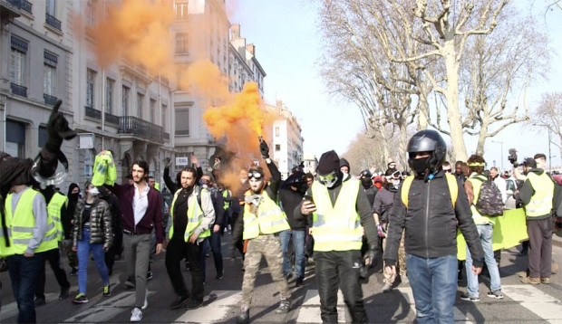 Diesmal dauert es nicht lange, bis die ersten Tränengasgranaten fliegen. Nicht einmal eine Viertelstunde ist vergangen, als die Ordnungskräfte die Rhône-Brücke, die „Pont Gallieni“, blockieren. Sie wollen verhindern, dass die Gelbwesten in die Geschäftsviertel der Stadt vordringen, also zwingen sie den Demonstrationszug in Richtung Süden zu marschieren. Ungekannt bisher in Lyon: Randalierer, die sich gelbe Westen angezogen haben, vandalisieren mehrere Bankfilialen. Gut 1.000 Gelbwesten zählte die örtliche Presse, die meisten von ihnen friedlich und nicht auf Randale aus. Bis zum Abend gibt es mehr als 20 vorübergehende Festnahmen, am Sonntag sitzen noch immer elf in Sicherheitsgewahrsam. Landesweit waren es nach Angaben des Innenministeriums 46.600 Gelbwesten, die auf die Straße gingen, gut 5.000 mehr als am vergangenen Wochenende.