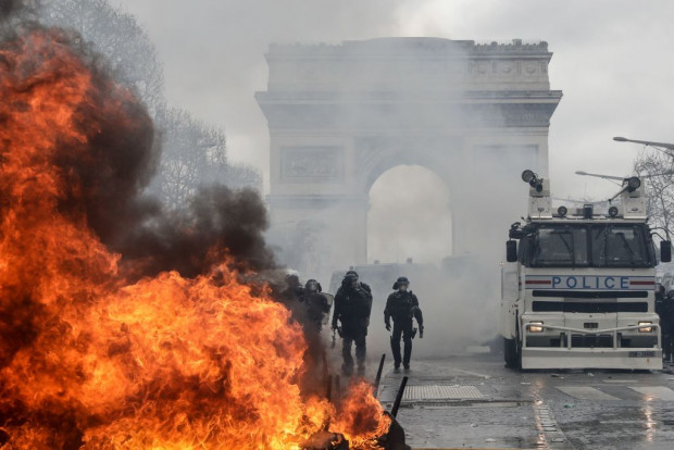 „Sie wollen die Republik zerstören.“ So brachte Frankreichs Präsident Emmanuel Macron seine Sicht auf die Gewaltorgie auf der Pariser Prachtstraße Champs-Élysées am Samstag auf den Punkt. Das seien keine Demonstrationen, diese Leute nähmen das Risiko zu Töten in Kauf. Alle, die dabei gewesen seien, hätten sich zu Komplizen gemacht. Seit November habe die Regierung viel geändert, doch der heutige Tag habe gezeigt, dass man immer noch nicht angekommen sei. Er kündigte „harte Entscheidungen“ an. Macron hatte wegen der Vorfälle in Paris eigens seinen Ski-Urlaub in den Pyrenäen abgebrochen und war gegen 22.30 Uhr zu einem Krisentreffen mit Premierminister Philippe Édouard, Innenminister Christophe Castaner und Justizministerin Nicole Belleoubet in Paris geeilt. Die oppositionellen Republikaner warfen Macron indes vor, seiner Aufgabe nicht gerecht zu werden.