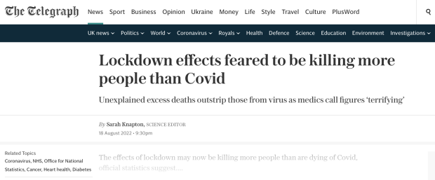 Bildschirmfoto 2022-08-21 um 01.25.50 Published on 21. August 2022 in „The Telegraph“ berichtet: Mehr Menschen könnten durch Maßnahmen versterben als am VirusFull resolution (620 × 257) Next →