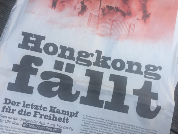 Eher verzweifelt wirkt da der Versuch von einigen Hongkong-Chinesen, die sich eine Einmischung der EU-Nationen und Deutschlands ausdrücklich wünschen. „Hongkong fällt“, so sind ganzseitige Zeitungsanzeigen überschrieben: „Der letzte Kampf für die Freiheit – wir brauchen Ihre Hilfe“. Aber Deutschland braucht längst Geld aus China. Die globalen Machtverhältnisse haben sich gewendet, auch politisch und moralisch: Deutschlands Rolle als Musterknabe in Sachen Demokratie und Menschenrechte ist in China zumindest nicht mehr besonders glaubwürdig.