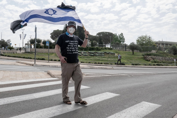 imago0099482805h Published on 20. April 2020 in Israel: Coronakrise erzwingt die RegierungsbildungFull resolution (620 × 413) Next → Anti-Netanyahu-Demonstrant in Jerusalem