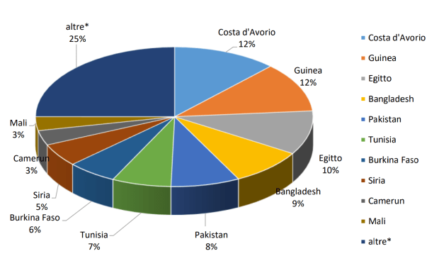 In diesem Jahr berichtet Italien von über 75.000 illegalen Überfahrten bis zum 14. Juli, also zwei Wochen über die Jahresmitte. In der Graphik sind die Anlandungen der Jahre 2021 und 2022 jeweils bis zum selben Stichtag verglichen. Das Bild ist kein Gutes: Laut den Zahlen der Abteilung für öffentliche Sicherheit (angesiedelt im Innenministerium) haben sich die Anlandungen in diesem Jahr im Vergleich mehr als verdoppelt. Die Herkunft der Migranten ist hier vor allem afrikanisch. An erster Stelle stehen die Elfenbeinküste und Guinea (je zwölf Prozent aller Angelandeten), gefolgt von Ägypten (10 %). Erst danach folgen die Herkunftsländer Bangladesch (9 %), Pakistan (8 %) und Tunesien (7 %). Syrer spielen mit fünf Prozent kaum eine Rolle.