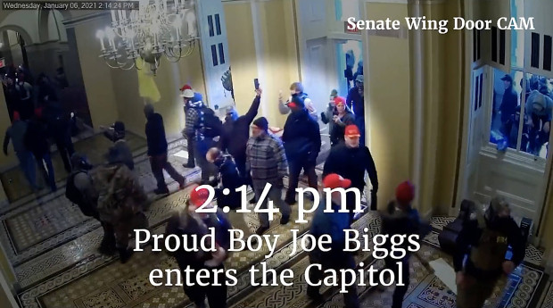 imago0161077296h Published on 7. März 2023 in Die neuen Bilder vom „Sturm auf das Kapitol“Full resolution (620 × 345) Screenshot von einer Überwachungskamera im Kapitol in Washington am 06.01.2021