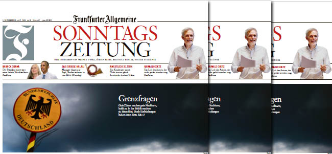 „So bricht nun eine echte Zeitenwende an: Das Magazin hat über seinen ewigen Gottvaterherausgeber, den Hochkultursammler Hugh Hefner, beschlossen, künftig keine nackten Frauen mehr zu zeigen. So der amtierende Playboy-Chef Scott Flanders gegenüber der New York Times. Jedenfalls nicht in der amerikanischen Ausgabe. Die deutsche hingegen, so deren Chefredakteur Florian Boitin, behält sich „redaktionelle Unabhängigkeit“ vor und stellt klar: „Auf die Ausrichtung des deutschen Playboy hat die Entscheidung der Amerikaner keinen Einfluss.“
