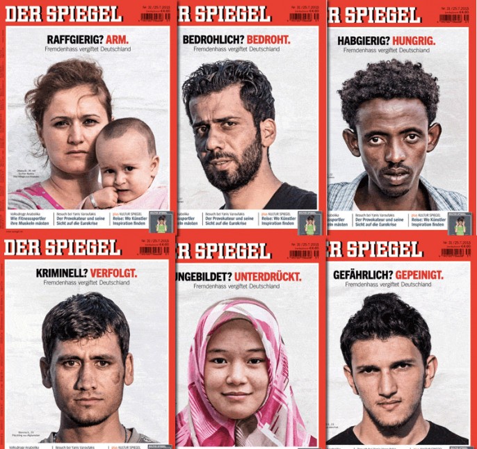 Mit einem Geschütz von gleich sechs unterschiedlichen Titelbildern und Headlines zum Thema Flüchtlinge wartet der aktuelle Spiegel zu diesem Wochenende auf. Im Supermarkt mache ich drei verschiedene Cover ausfindig und beobachte, wie Interessenten irritiert schauen, ob es sich dabei auch gleich um unterschiedliche Ausgaben handelt. Immerhin: Mit der Aufmerksamkeit klappt es. Inhaltlich aber verhebt sich das Magazin mit dem Titel, der Auftakt zu einer Serie sein soll, sichtlich.