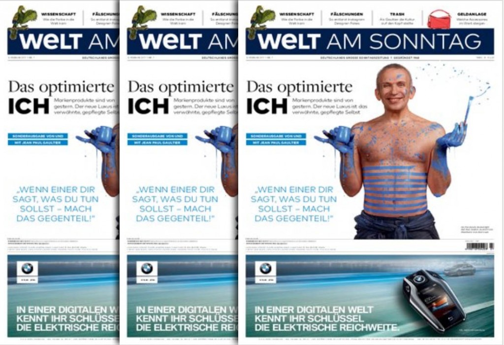 Die WeLT AM SONNTAG glänzt heute, weil sie mit dreiviertel Seiten Werbung vom Feinsten in Hochglanzpapier eingehüllt wird: für den ersten "BMW 5er PLUG-IN-HYBRID".