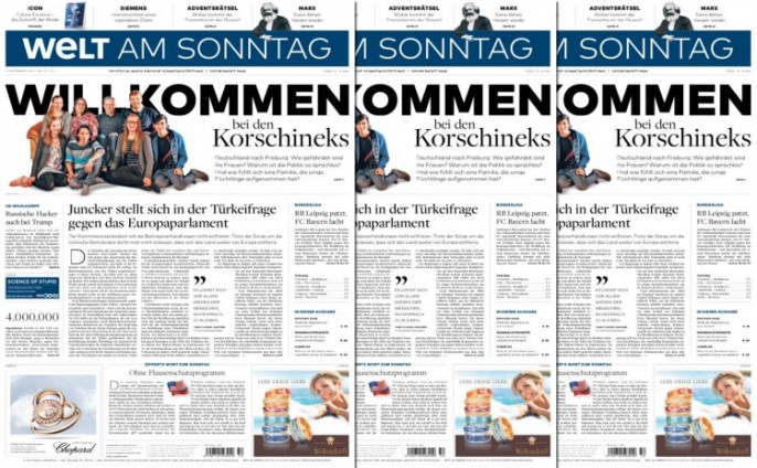 Am dritten Adventssonntag bietet die WeLT AM SONNTAG auf den vorderen Seiten ein Ensemble von Beiträgen rund ums Thema der Erfahrungen mit Migranten. Die Zusammenstellung ist auf Deeskalation gestimmt, Schönfärberei ist es nicht, aber ein paar wirklich kritische Stimmen hätten der Ausgabe gut gestanden.