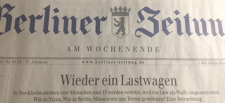 Es ist ein Kreuz mit diesen Berichten über islamistische Attentäter: Verschweigen geht nicht mehr, aber benannt werden darf auch nicht, was zu politisch unerwünschten Folgerungen der „dummen“ Leser führen könnte. Also spricht das ZDF vom „Vorfall“ in Stockholm; die Berliner Zeitung titelt: „Wieder ein Lastwagen“. Genau. Es ist gefährlich mit diesen Lastwagen.