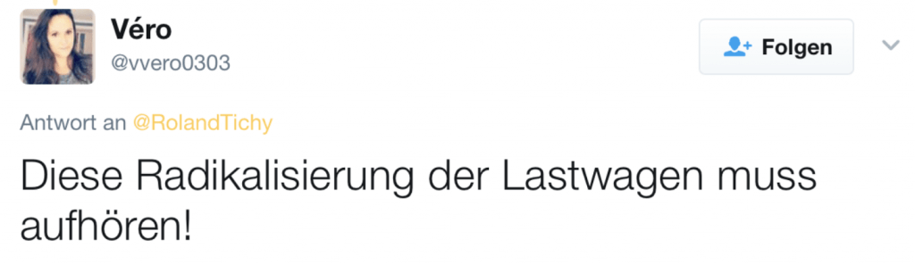 Lastwagenfahrer ist der neue Code für das Nicht-Gesagt-werden-Dürfende, was aber den Neusprechlern in Kummer weil sofort ins Gegenteil umschlägt.