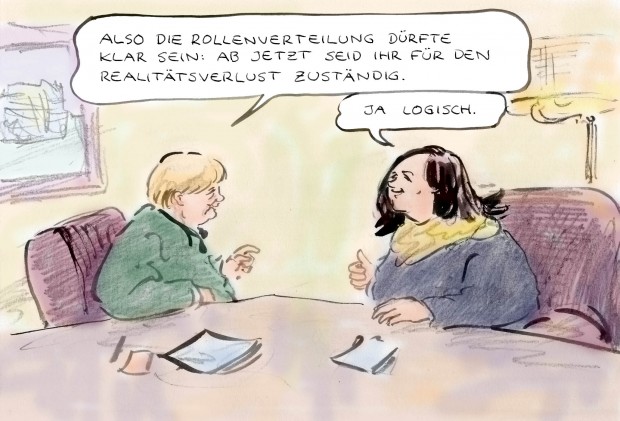 Ich bin FÜR diese Koalition, weil es mit Abstand die amüsanteste Legislaturperiode werden wird. Ich werde alle Debatten aufnehmen und abends mit Chips und Bier genüßlich Parlamentsfernsehen gucken. Wenn die AfD angreift und Lindner und Seehofer Merkel verteidigen müssen, dann werde ich mir brüllend auf die Schenkel klopfen. Die Grünen werden bald nicht mehr wissen, ob sie Männlein oder Weiblein sind. Sie kriegen auf die Mütze von der SPD, den Linken, der AfD und aus den eigenen Reihen. FDP und CSU werden sich jeden Tag profilieren müssen. Sie werden keinen Tag Ruhe geben und Unruhe stiften in den eigenen Reihen.… Mehr