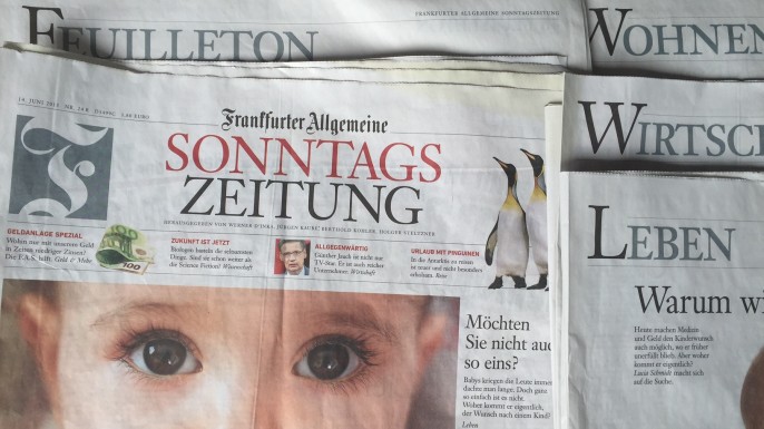 Am Kiosk ist meine erste Reaktion, am Datum zu prüfen, ob das auch wirklich die heutige Ausgabe der Frankfurter Allgemeinen Sonntagszeitung ist. Mit einer Design-Kur will sie seit heute neue Seiten aufziehen – optisch und inhaltlich, meldete MEEDIA vor einigen Tagen. Heute ist das nicht meine Wahrnehmung – die meines Mikrozensuses auch nicht.