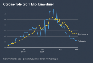 Air Türkis schrieb auf TE: Die Wirksamkeit restriktiver Kontaktbeschränkungen zeigte sich auch im internationalen Vergleich nie. Verschiedene renommierte Forscher zeigten in Datenanalysen, dass es kaum einen Unterschied macht, ob ein Lockdown verhängt wurde oder nicht. Auch das lockdownfreie Schweden bewies in der zweiten Welle, dass der deutsche Lockdown im Kern nicht erfolgreich war: