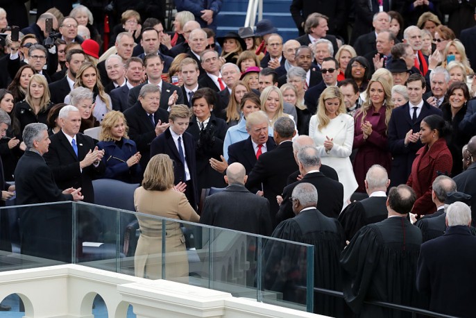 [*] TRUMP: Chief Justice Roberts, President Carter, President Clinton, President Bush, President Obama, fellow Americans and people of the world, thank you.
