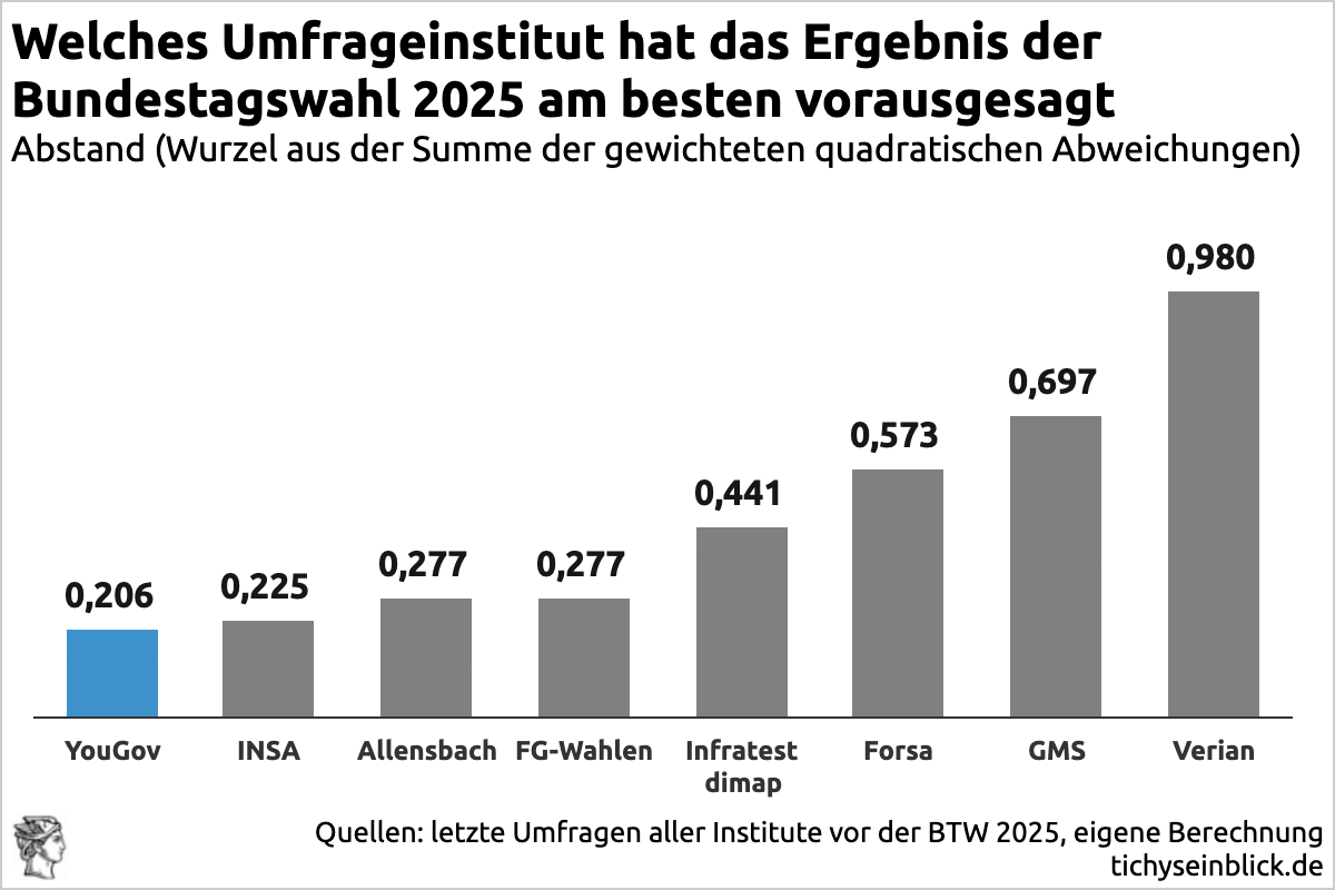 Für YouGov spricht die Prognosequalität bei der letzten Bundestagswahl.