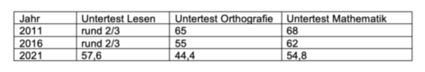 Signifikant weniger Viertklässler erreichten 2021 bei der IQB-Testung im Vergleich zu 2011 und 2016 die ohnehin schon niedrig angesetzten Bildungsstandards der Kultusministerkonferenz (KMK). Nachfolgend die Anteile der Viertklässler, die die Regelstandards erreichten: