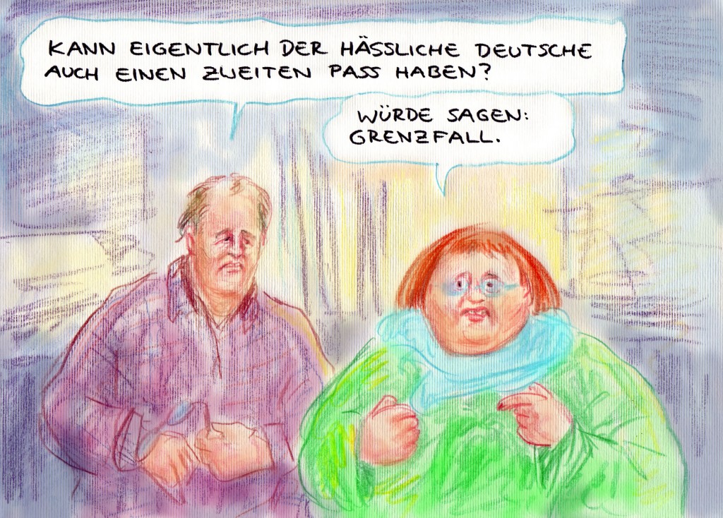 Dieser Traum ist ausgeträumt. Multikulti ist krachend gescheitert. Geblieben ist als nostalgischer Restposten die Forderung nach der doppelten Staatsbürgerschaft. Wer sich partout nicht entscheiden will, welches Land „sein Land“ ist, wer sich mit jedem seiner beiden Pässe die Rosinen herauspicken will, die jeder Staat zu bieten hat, der soll zwei Pässe haben dürfen. Der Ausweis als Gebrauchsgegenstand – Zweithandy, Zweitauto, Zweitpass.