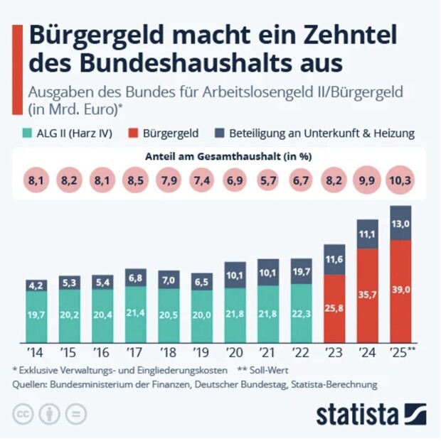 Diese Haltung gilt unter der jetzigen schwarz-roten Regierung von CDU-Kanzler Friedrich Merz und seinem SPD-Vize Lars Klingbeil selbstverständlich weiter. Stattdessen sollen jetzt halt mitversicherte Ehepartner Sozialbeiträge zahlen müssen. Obendrein bleiben die Millionen Bürgergeldempfänger wie zum Beispiel aus der Ukraine wie üblich von solchen Gesetzen unberührt.