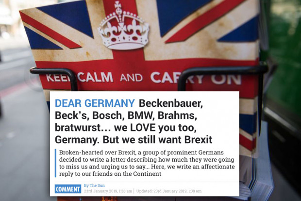 Dann rühmt die „Sun“ Bosch-Geschirrspüler, Miele-Staubsauger, DeWalt-Bohrer, Jurgen Klopp, Leroy Sane, Aldi and Lidl, und oh ja, „unsere Queen ist ein kleines bisschen deutsch“.